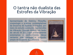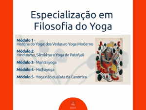 Este curso foi criado em 2014 com um currículo abrangente, que toca em diversos aspectos do pensamento filosófico indiano dos quais derivam as práticas que conhecemos na atualidade sob o nome Yoga. Para isso, apresentamos obras compostas originalmente em língua sânscrita, em traduções feitas para a língua portuguesa, que representam as principais vertentes do hinduísmo e das filosofias indianas.